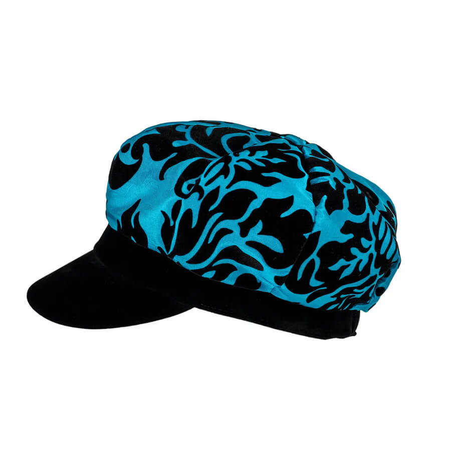 The brim and side panels are finished in luxurious velour, featuring a rich paisley design in deep, jewel-like tones. This adds depth, texture and a touch of vintage-inspired elegance, while the soft, plush feel gives the cap a premium, tactile quality.