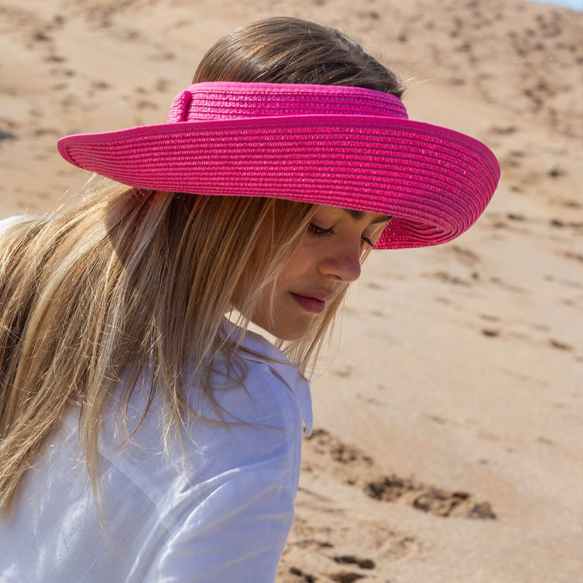 This women’s sun visor provides reliable shade to keep the sun out of your eyes while maintaining a chic, effortless look. The adjustable Velcro fastening ensures a secure and comfortable fit for all-day wear, while the soft bow detail at the back adds a feminine finishing touch.